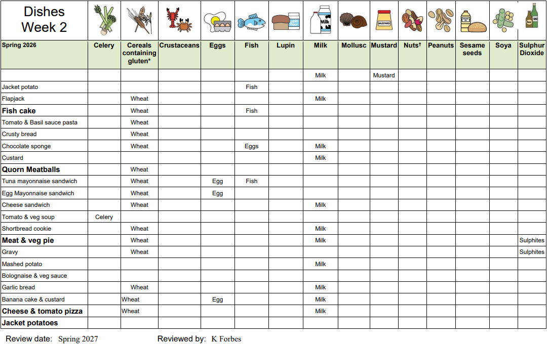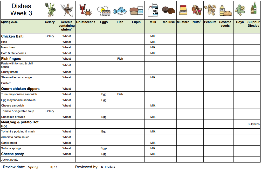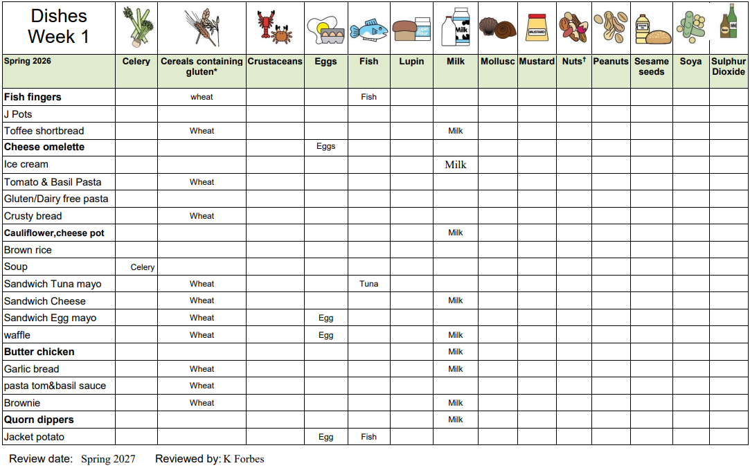 Spring Term 2026 - Allergen information